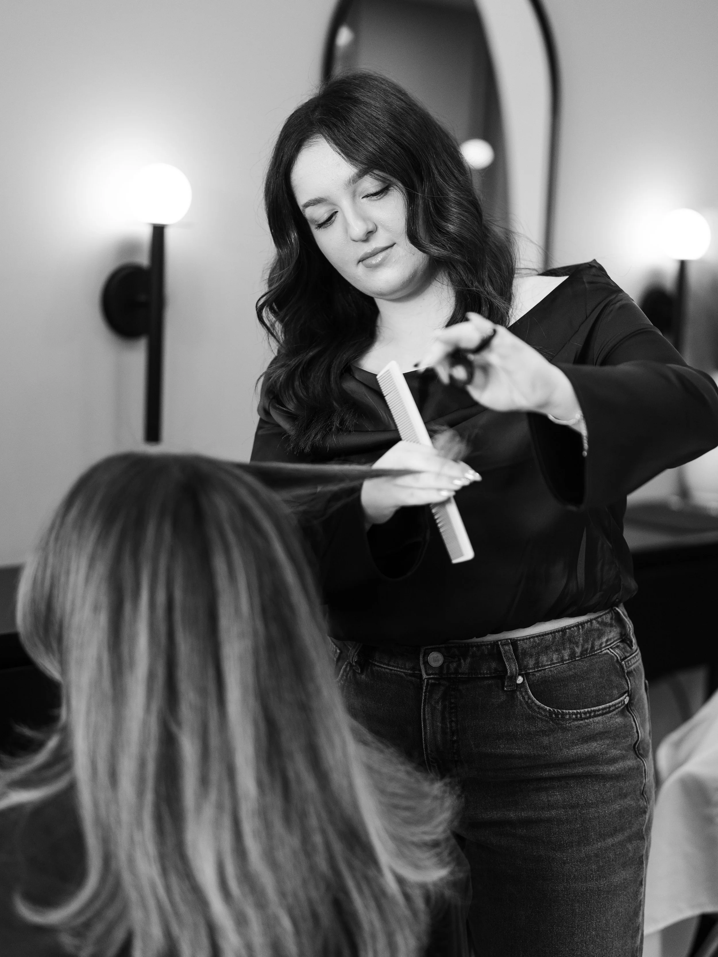 Elegant updos, soft waves, and timeless styles for your big day. Available in-salon or on-location.